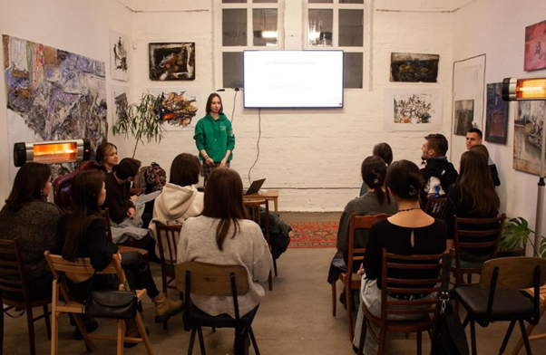 Ein wenig mehr über Kyjiwer Buchhandlungen. Obwohl sie oft nicht authentisch sind, haben fast alle ein Café im Inneren und bieten jeden Monat Buchclubs an. Es gibt viele Buchclubs in Kyjiw – für alle Altersgruppen und Vorlieben. Und es gibt auch eine literarische Kunsttherapie, die jedem anbietet, in seine innere Welt einzutauchen, indem er kreative Texte schreibt und liest, die Hauptfiguren seines fiktiven Buches schreibt und durch sie Traumata verarbeitet. Das organisiere ich übrigens auch mit einem Team.